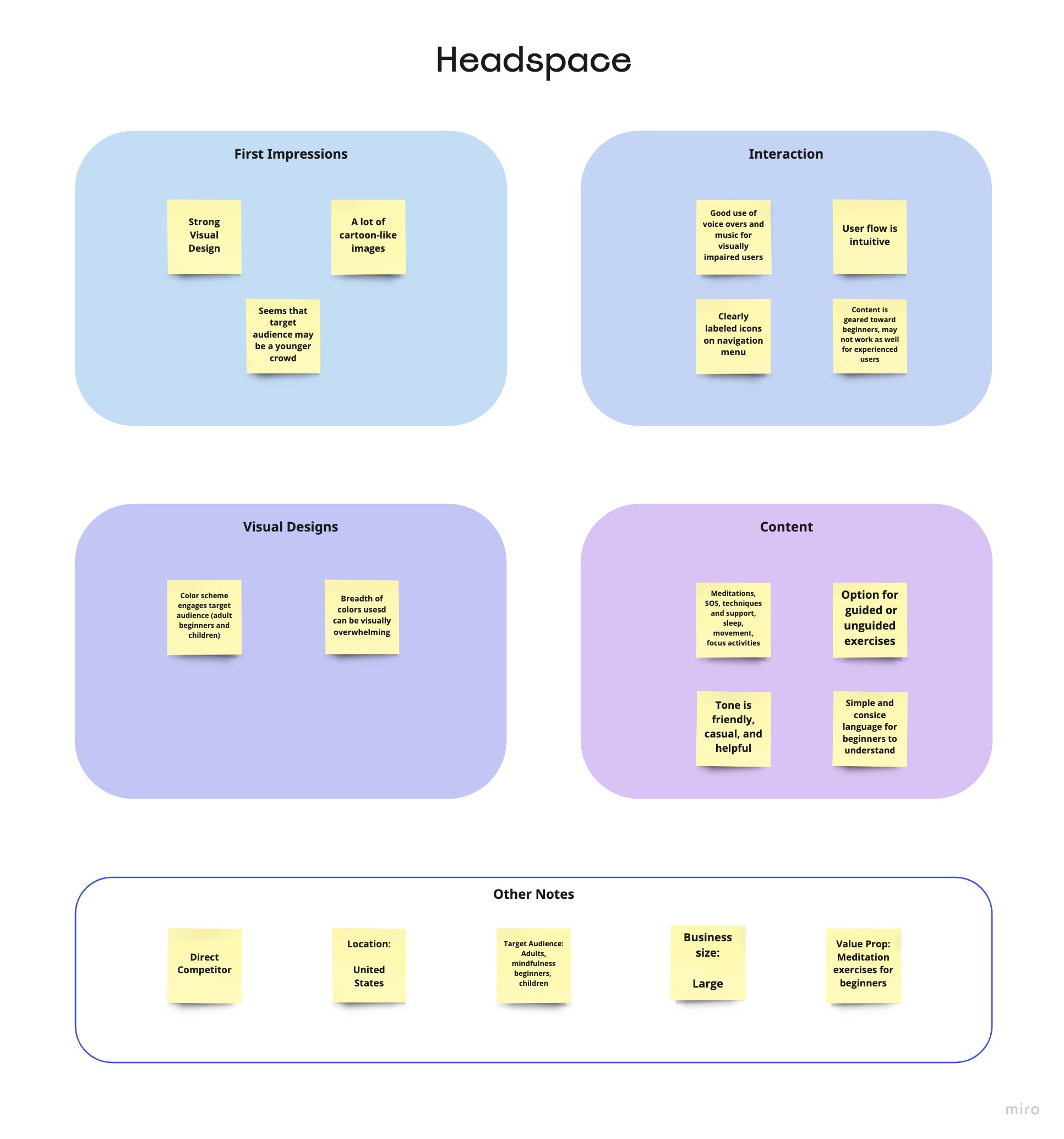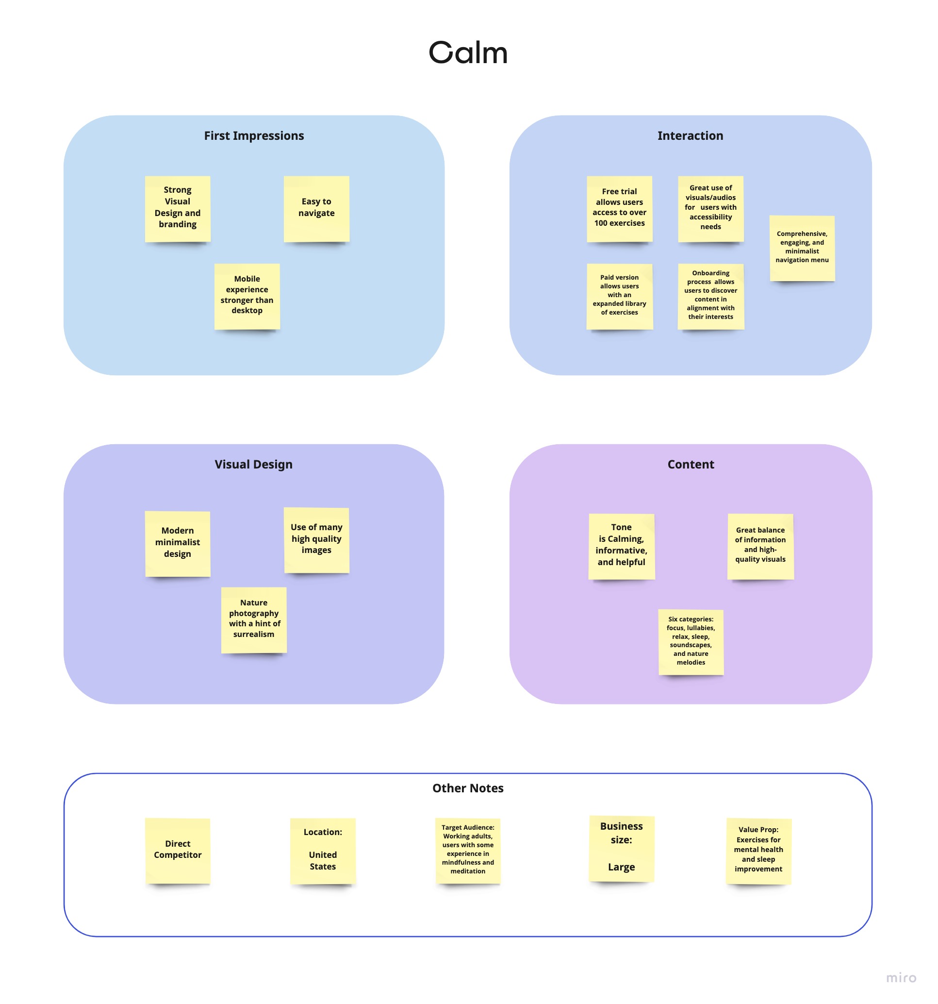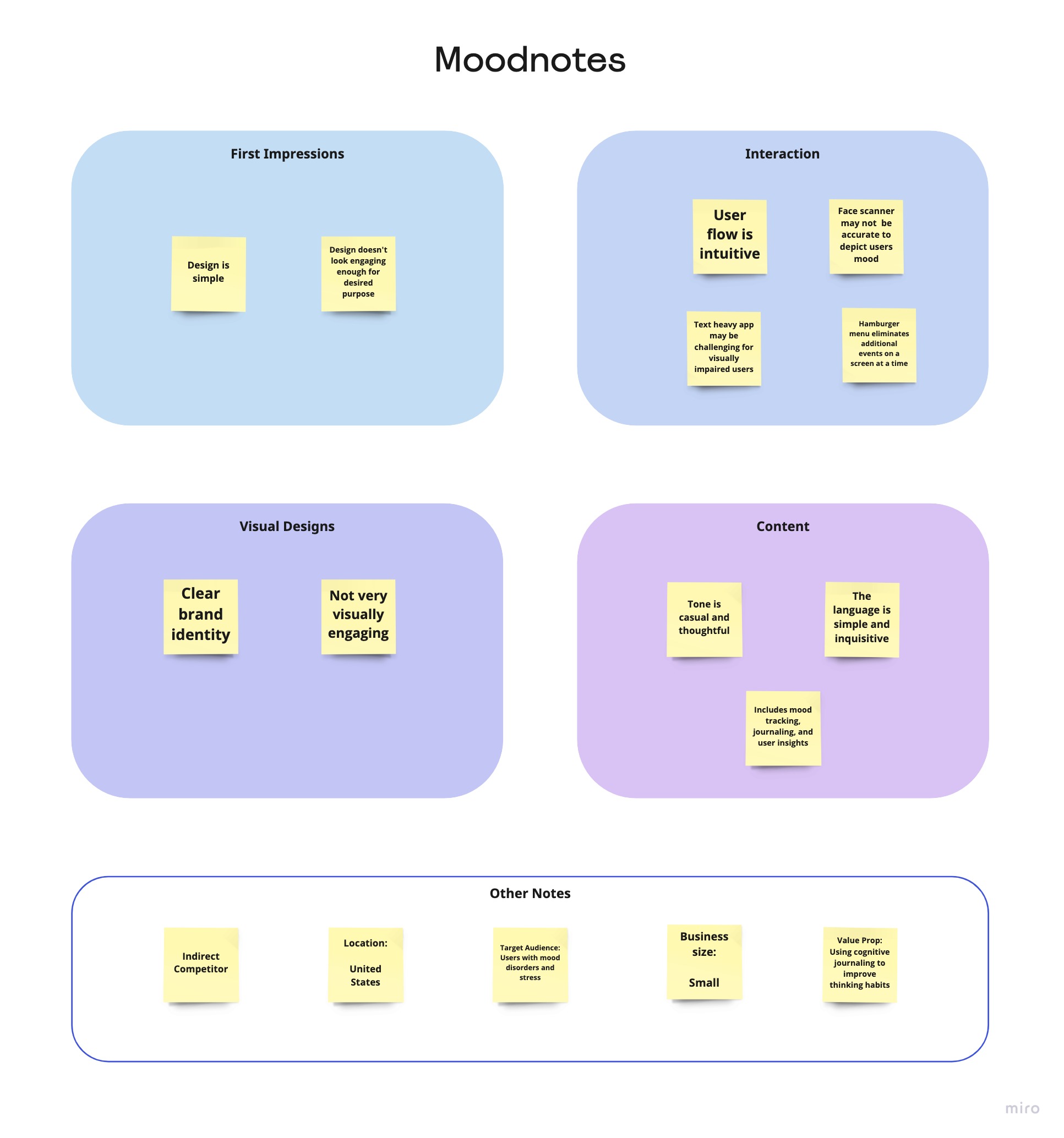 I conducted additional research to gain insight on the current market, and whether or not similar mobile applications were aiming to fulfill the users needs. These apps were: Calm, Headspace, Sanvello, and Moodnotes.