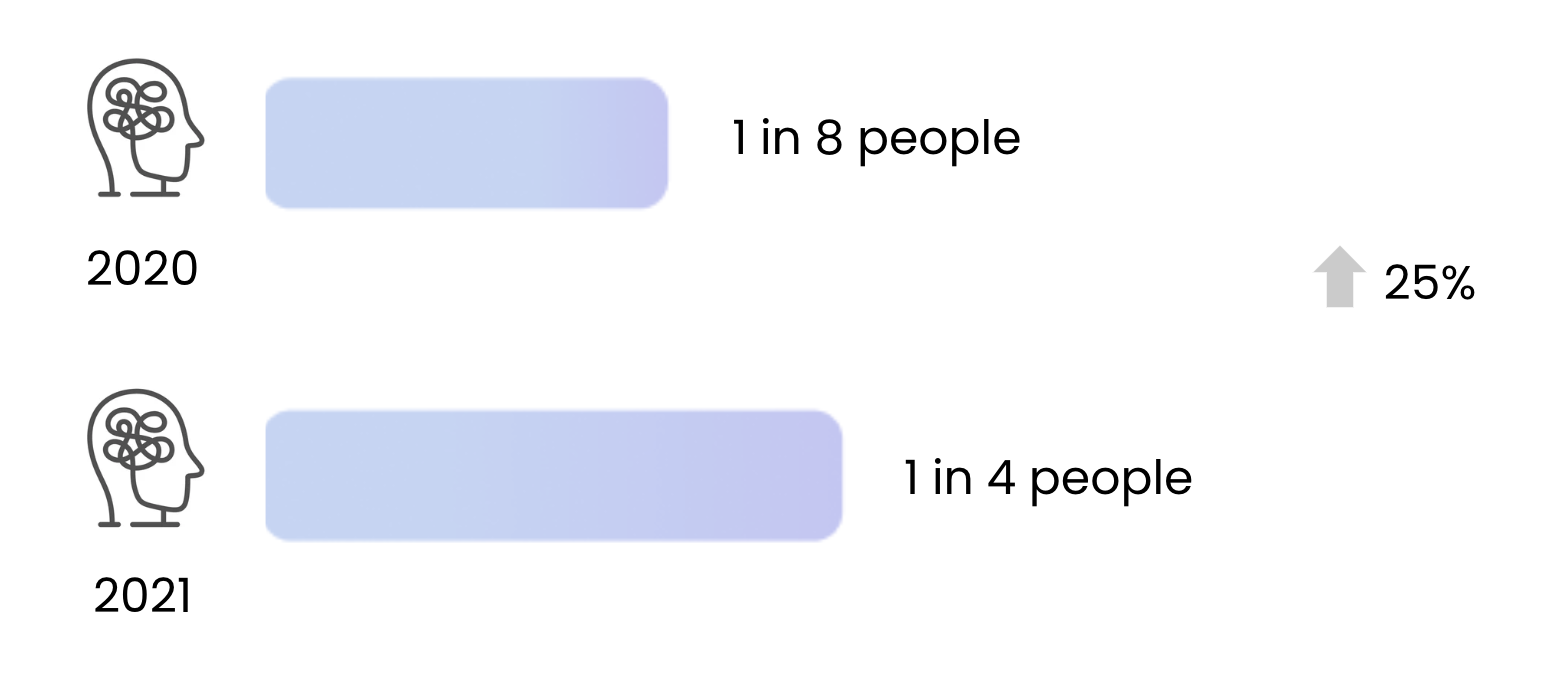In 2021, global prevalence of anxiety and depression increased by 25% (WHO, 2022). One major explanation for the increase is the unprecedented stress caused by prolonged social isolation combined with the inability to engage in leisurely activities due to Covid-19 restrictions. Now, more than ever, people are in need of a platform that provides the tools and professional services needed to care for mental health from home.