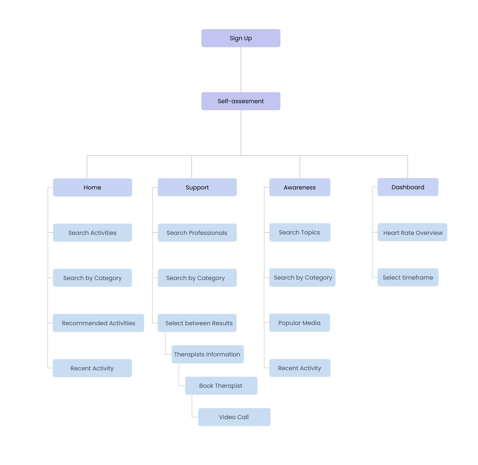I started by creating a sitemap that included the various features and their hierarchy within the product.
